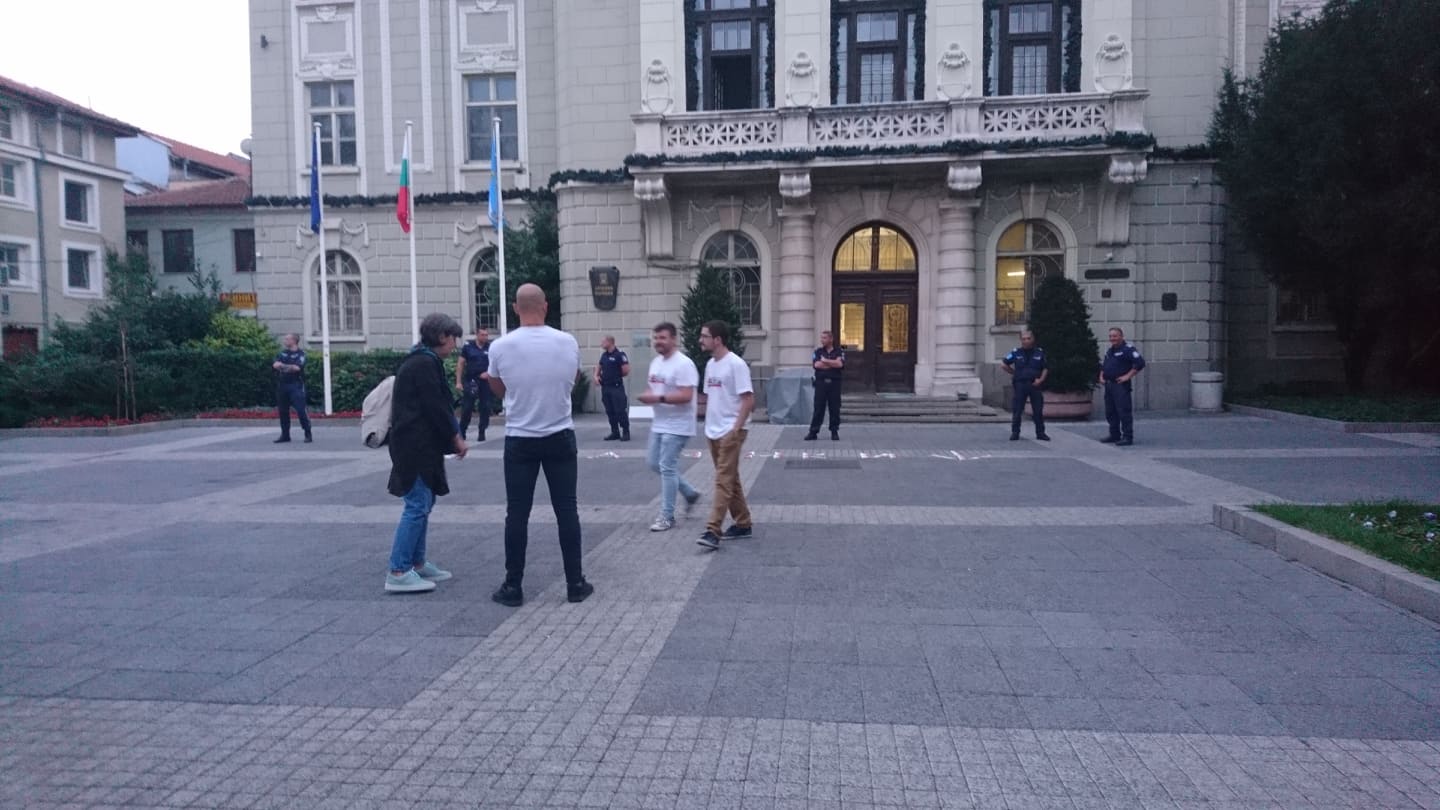 Повече полицаи, отколкото протестиращи имаше в началния част на протеста под наслов „Калинки вън!“ обявен за 18,30 пред сградата на Община Пловдив тази вечер.